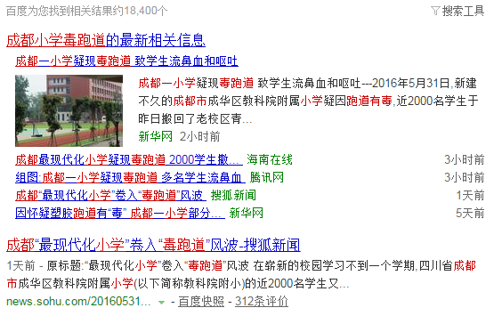 5月31日,新建不久的成都市成華區(qū)教科院附屬小學(xué)疑因跑道有毒,近2000名學(xué)生于昨日搬回了老校區(qū)青龍小學(xué),目前新學(xué)校內(nèi)除了保安等人員外,操場(chǎng)、教室未見(jiàn)學(xué)生上課。