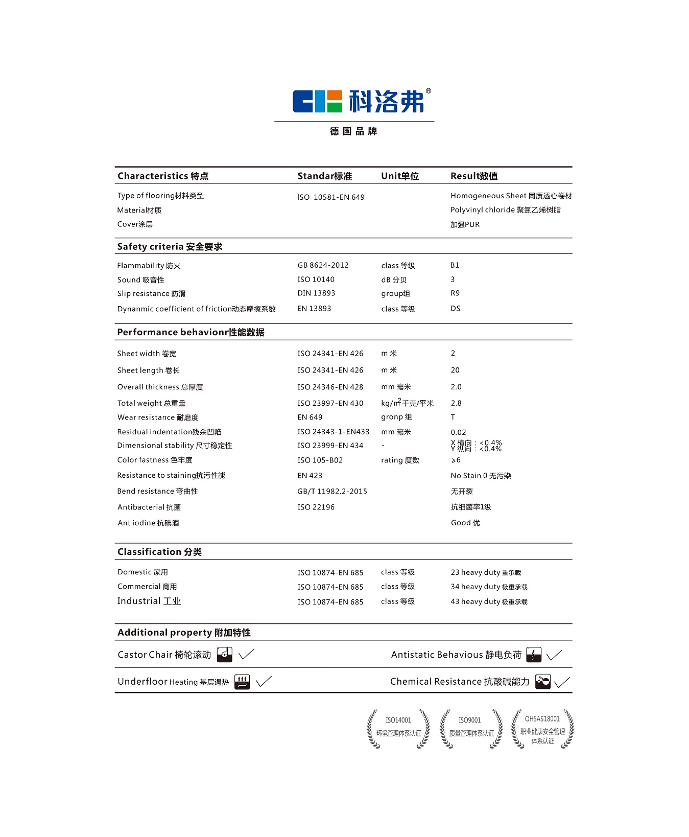 科潔系列無方向同質(zhì)透心PVC地板
