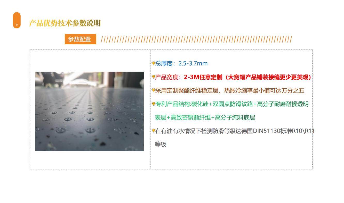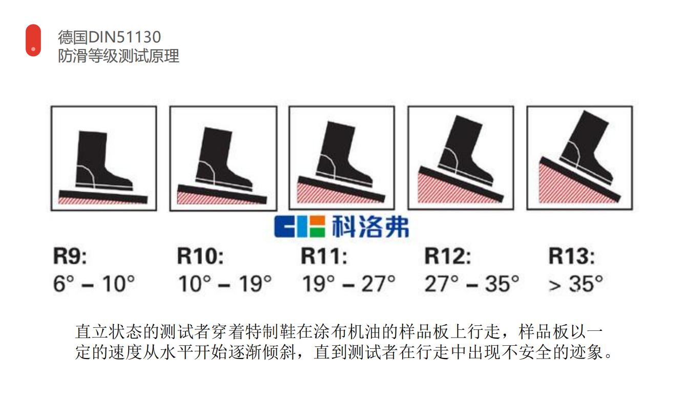 采用德國防滑標(biāo)準生產(chǎn),經(jīng)德國油濕地面防滑標(biāo)準DIN51130測試達R10防滑等級